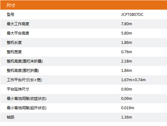 ● 工作高度:7.80m