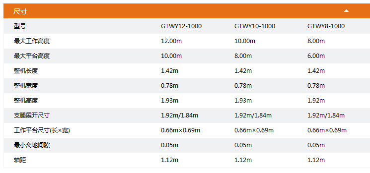 ● 工作高度:12.00m,10.00m和8.00m
