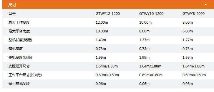 ● 工作高度:12.00m,10.00m和8.00m