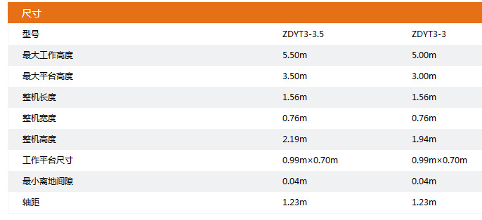 ● 工作高度:5.50m和5.00m