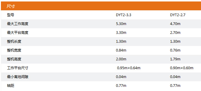 ● 工作高度:5.30m和4.70m